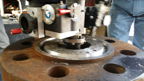 我们公司的专业设备可直接至现场,在任意位置、角度直接安装在法兰内侧或外侧,安装后进行车削修复,使密封面达到密封的技术要求。减少拆装、运输时间和成本。 此技术广泛应用于海洋、石油化工、水利、钢铁、电力等行业